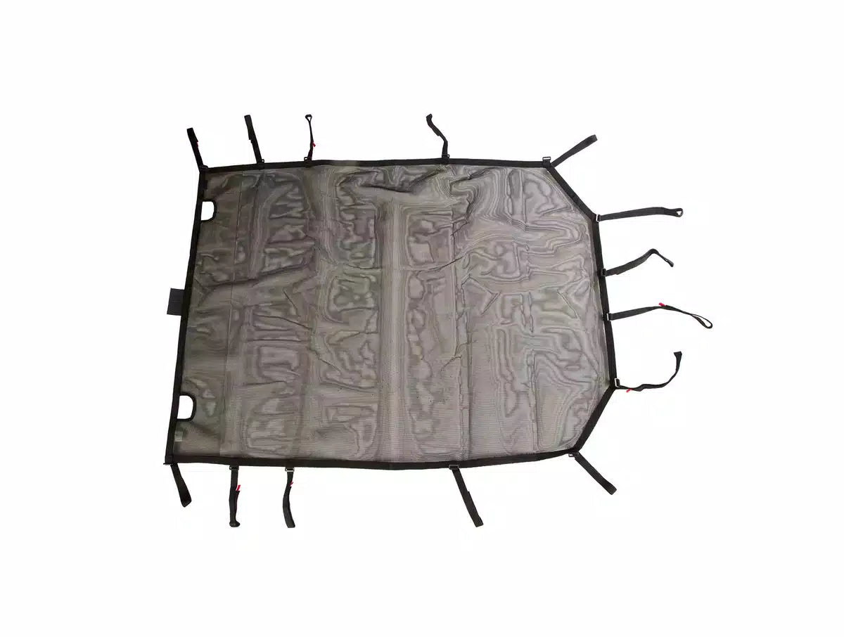 By using the mesh material with built-in elastic straps, this sunshade was designed to eliminate the need for a header channel as with other similar products. An all-in-one package, this sunshade is simple to install and does not require any modifications. By retaining access to the Jeep top clamps, drivers can keep the shade in place and preserve function of the factory top. The Eclipse Sun Shade installs with sewn-in bungee cords and a small mesh carrying bag for storage when not in use. Compact in size, the Rugged Ridge sun shade can be stored in just about any compartment of your Jeep for quick access.